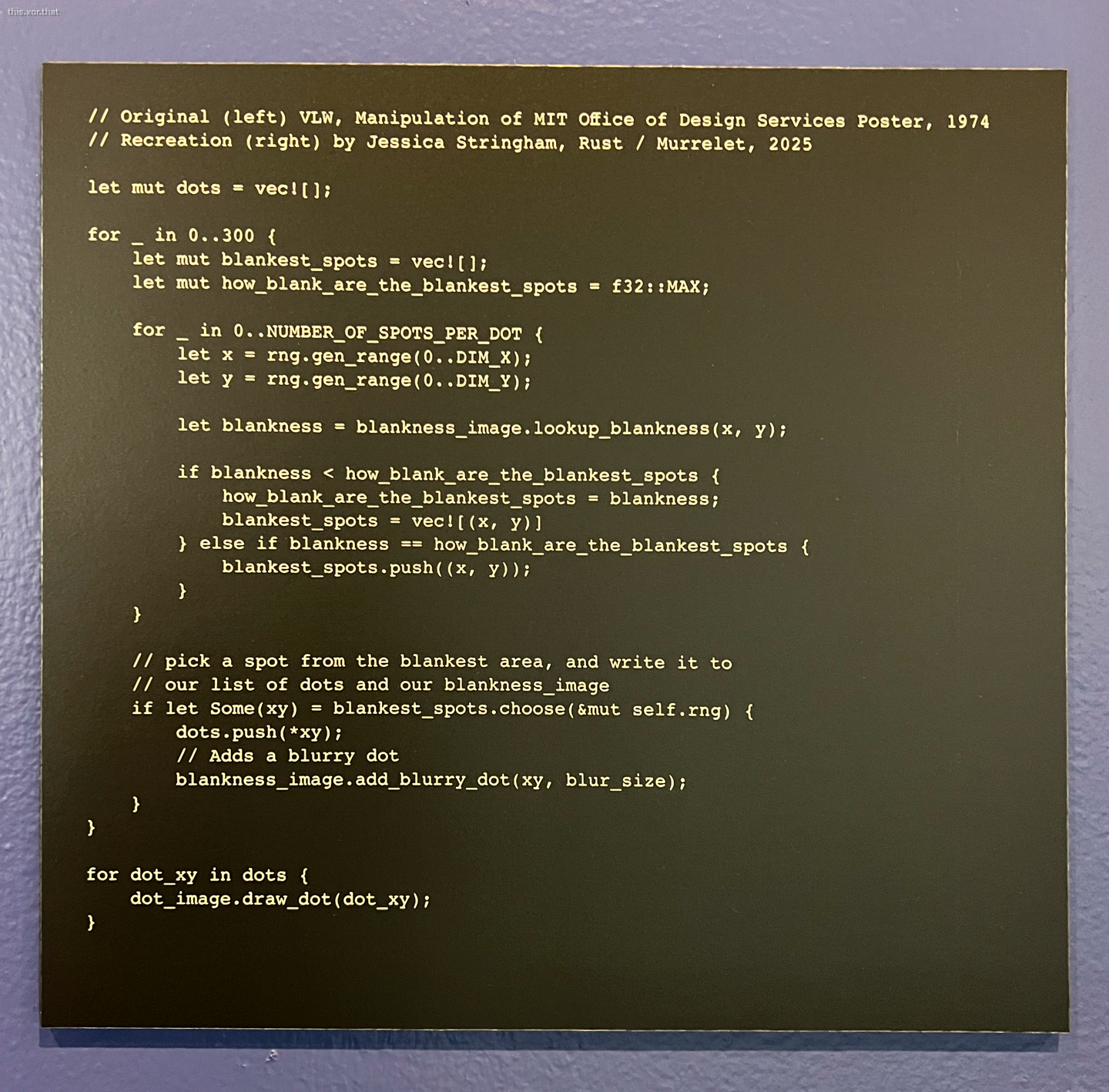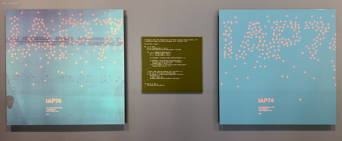 I used code to recreate a poster we found from IAP 1974 for the Future Type exhibit. The original poster is displayed next to pseudocode and my recreation.