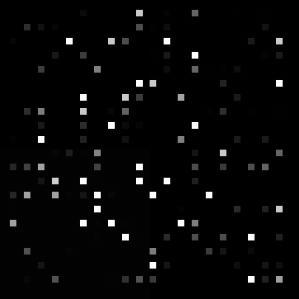 I’m also organizing a talk series and needed to make a poster for it. I used the leaf cell system, but instead of growing veins, I used a font as the veins. As another little trick, I have the veins pull the brightness out of the cells, which makes the type stand out.